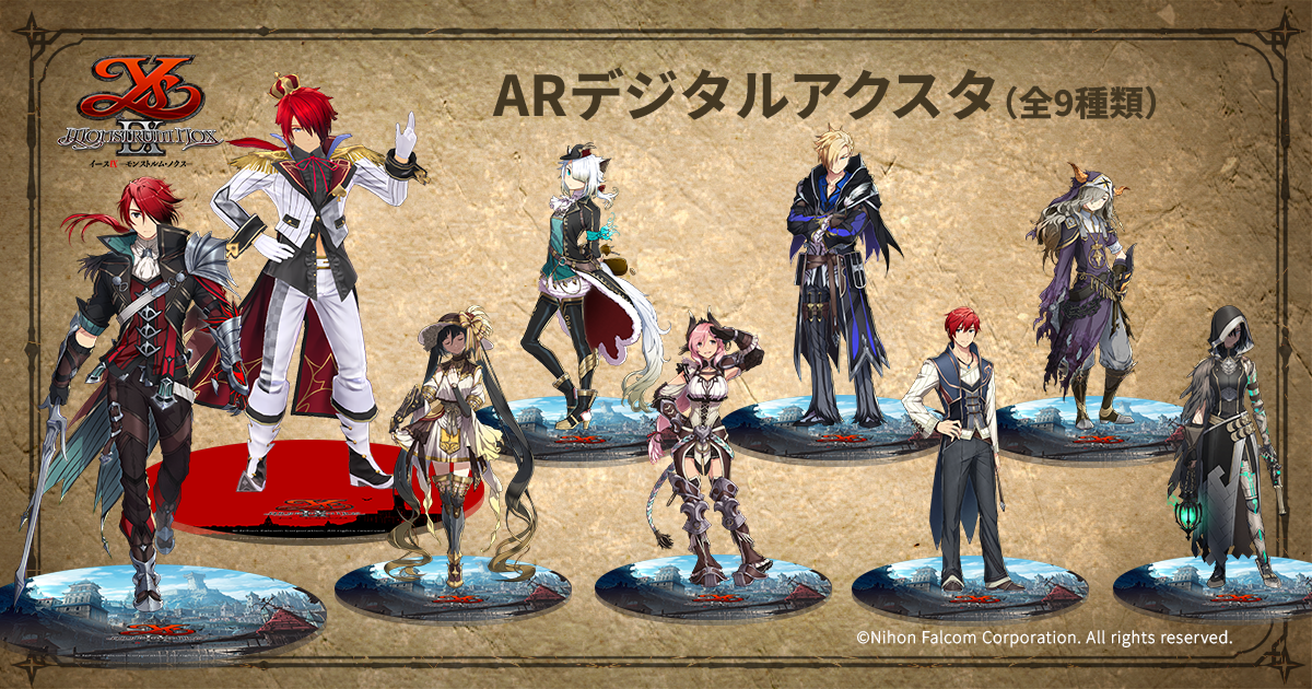 日本ファルコム株式会社『イースIX -Monstrum NOX-』より「アドル」や「怪人」たちのARデジタルアクリルスタンド付きブロマイドが登場。